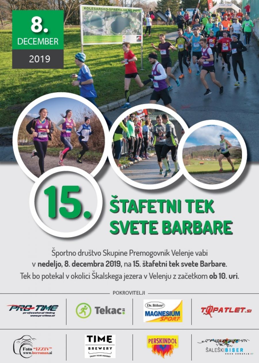 Športno društvo Skupine Premogovnik Velenje vabi v nedeljo, 8. decembra 2019, na 15. štafetni tek Svete Barbare.