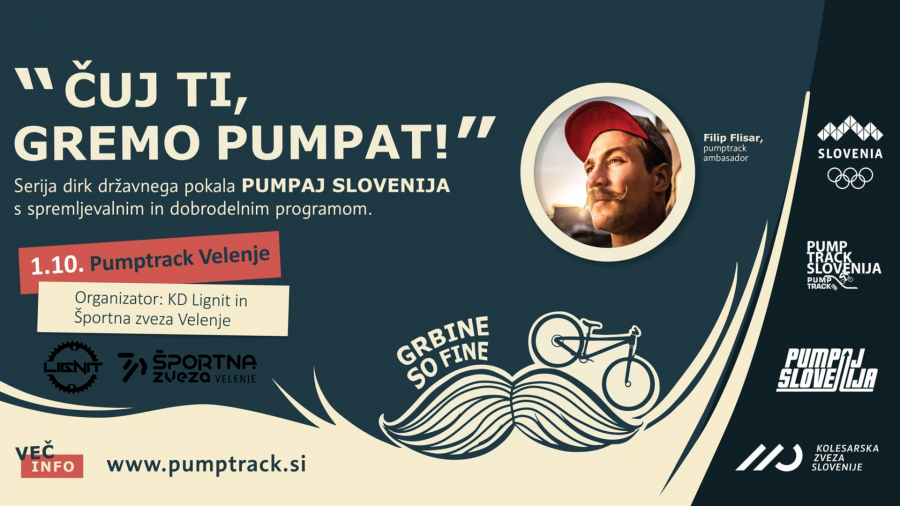 Športna zveza Velenje vabi v sodelovanju s Kolesarskim društvom Lignit na tekmo državnega pokala Pumpaj Slovenija s spremljevalnim in dobrodelnim programom GRBINE SO FINE.
