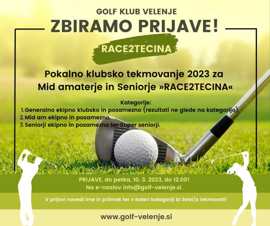 Golf klub Velenje objavlja Razpis Pokalnega klubskega tekmovanja 2023 za Mid amaterje in Seniorje »RACE2TECINA«.