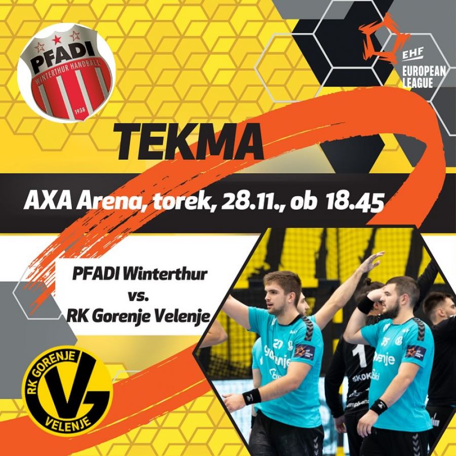 Rokometaši Gorenja Velenja se bodo v torek, 28. novembra pomerili s švicarsko ekipo PFADI Winterthur. Zadnje gostovanje v skupinskem delu Lige Evropa bo na sporedu ob 18.45 uri z neposrednim prenosom na Arenasport.
