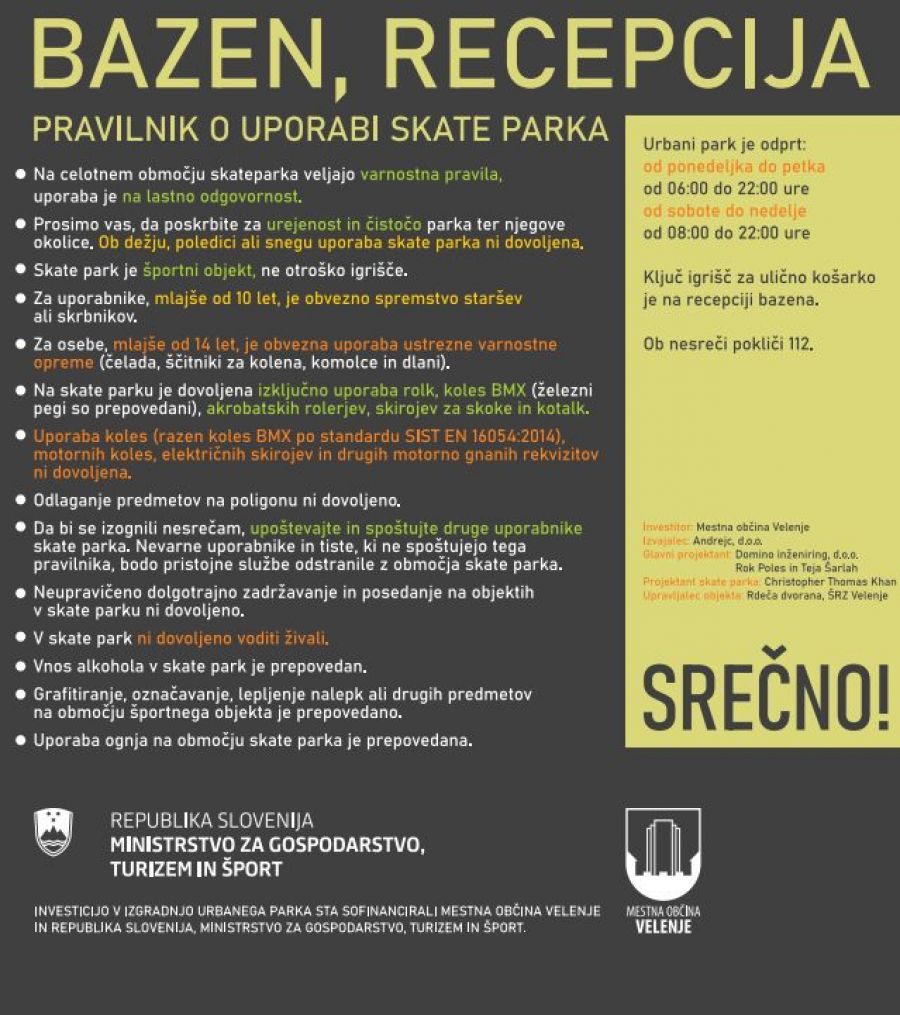 Nov športni objekt Urbani park, ki nudi infrastrukturo za dva mlada olimpijska športa (ulično košarko in skejtanje) ter uporabnikom nudi skejt objekte v dveh disciplinah (street in bowl), ima uporabno dovoljenje.