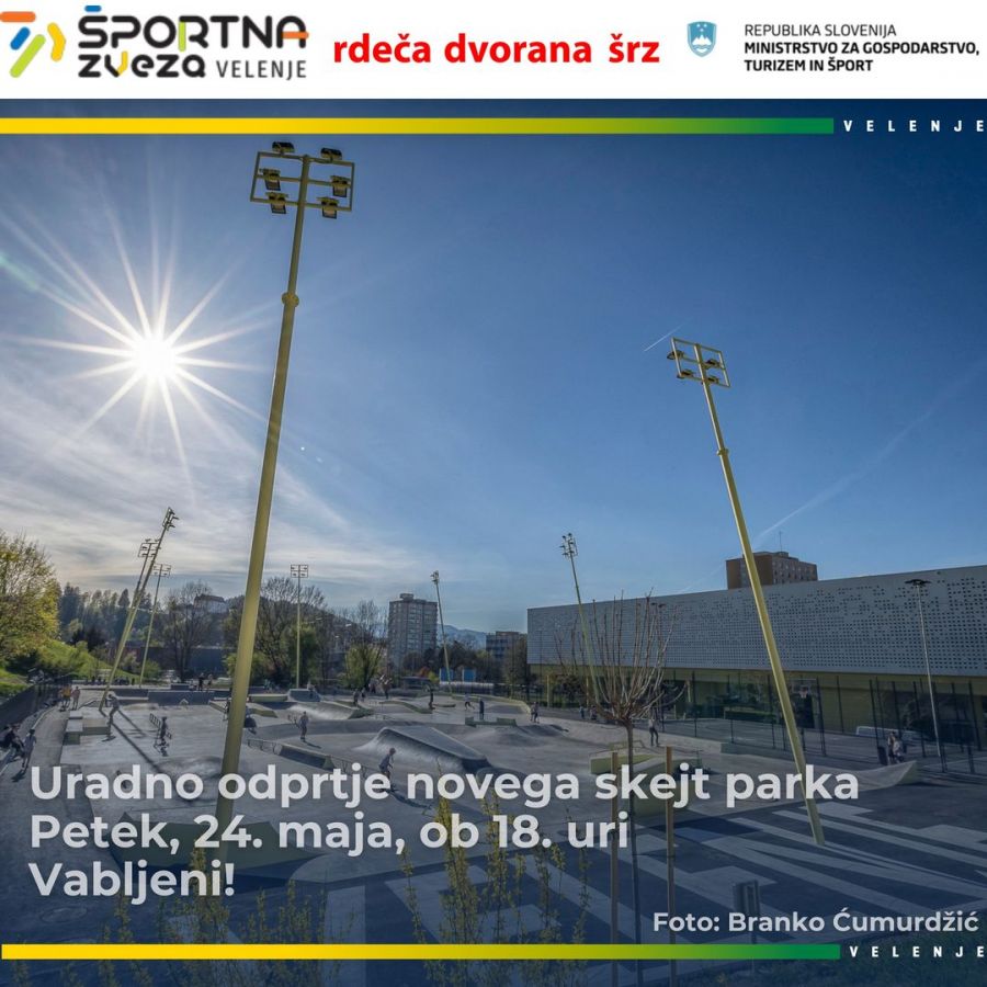 V petek, 24. maja, od 18. ure dalje bosta župan Mestne občine Velenje Peter Dermol in minister za gospodarstvo, turizem in šport Matjaž Han slavnostno predala park namenu. Sledil bo koncert velenjskega skejterja 6pack Čukurja in velenjske metal skupine KAOZ, ki je med prvimi zaigrala na improviziranem skejt parku v letnem bazenu. V petek zvečer bo na voljo tudi prosto igranje v košarki 3 x 3, na ogled pa bo tudi prosti trening Best Foot Forward.