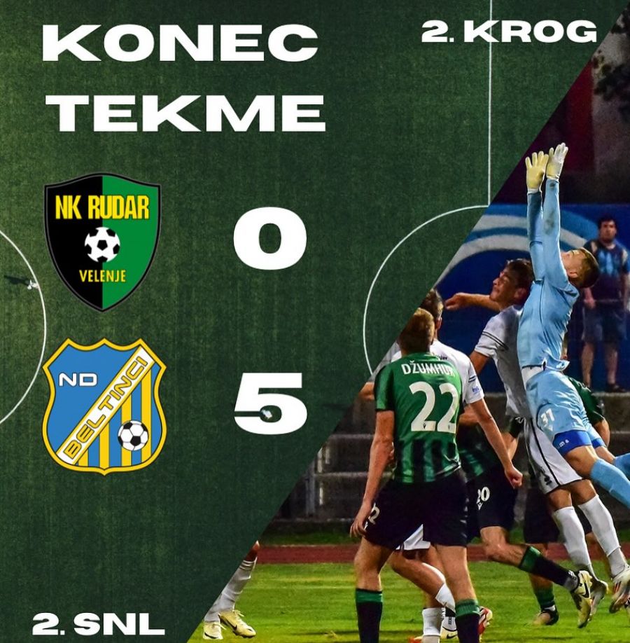 V soboto, 17.8.2024 so v 2. krogu 2. SNL v Velenju nogometaši Rudarja visoko izgubili proti ekipi iz Beltincev.
