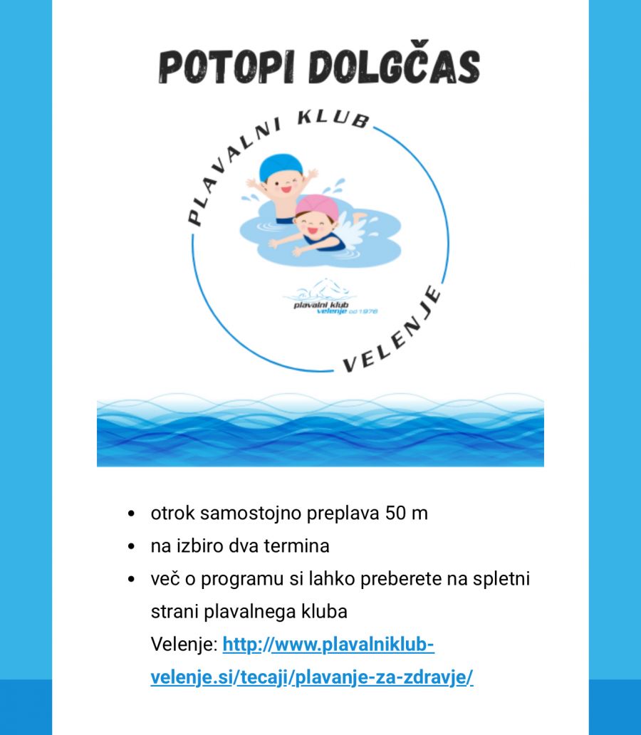 Plavalni klub Velenje vabi k spletnemu vpisu vašega otroka v različne klubske programe. Spletni vpis bo možen od 27. 8. 2024 naprej (do zasedenosti vseh prostih mest).