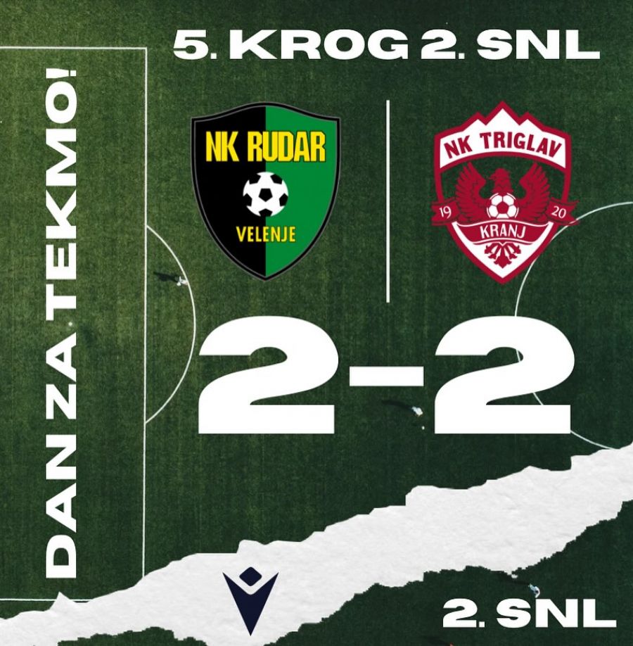 RUDAR VELENJE – TRIGLAV KRANJ 2:2 (1:1)
