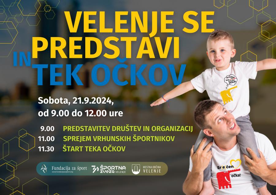 Športna zveza Velenje v sodelovanju z Mestno občino Velenje prireja tradicionalni dogodek Velenje se predstavi in TEK OČKOV, ki bo potekala v soboto, 21.9.2024 na Titovem trgu med 9.00 in 12.00 uro.