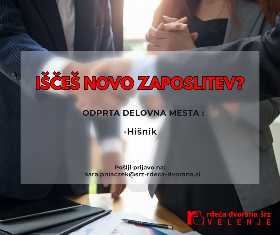 Rdeča dvorana Velenje - Športno rekreacijski zavod Velenje vas vabi, da postanete del njihovega kolektiva!