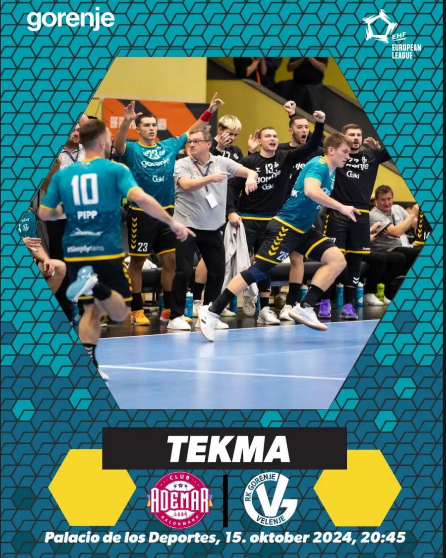Tekmo Ademar Leon – Gorenje Velenje si boste lahko v živo ogledali tudi na programu Arena Sport v Sloveniji.