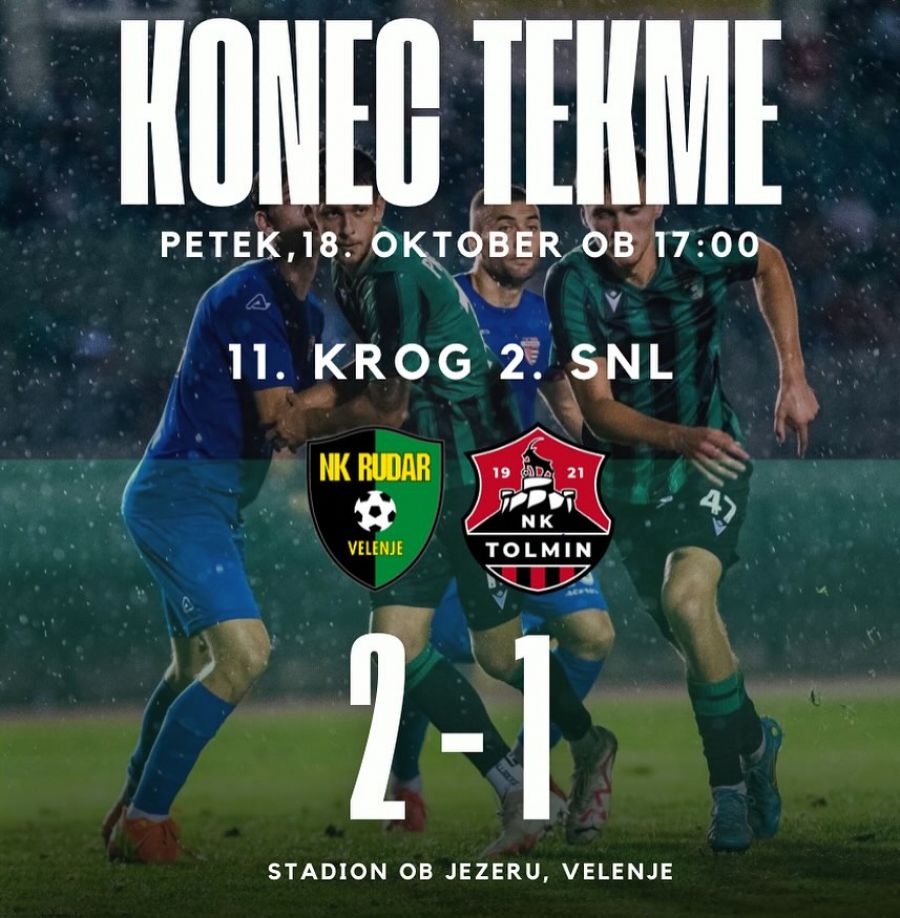 Petek, 18.10.2024 - S tekmama v Kranju in Velenju se je pričela druga tretjina 2. SNL. Triglav je bil s tremi doseženimi zadetki boljšo od Krke, Rudar pa je z izidom 2:1 premagal ekipo Tolmina.