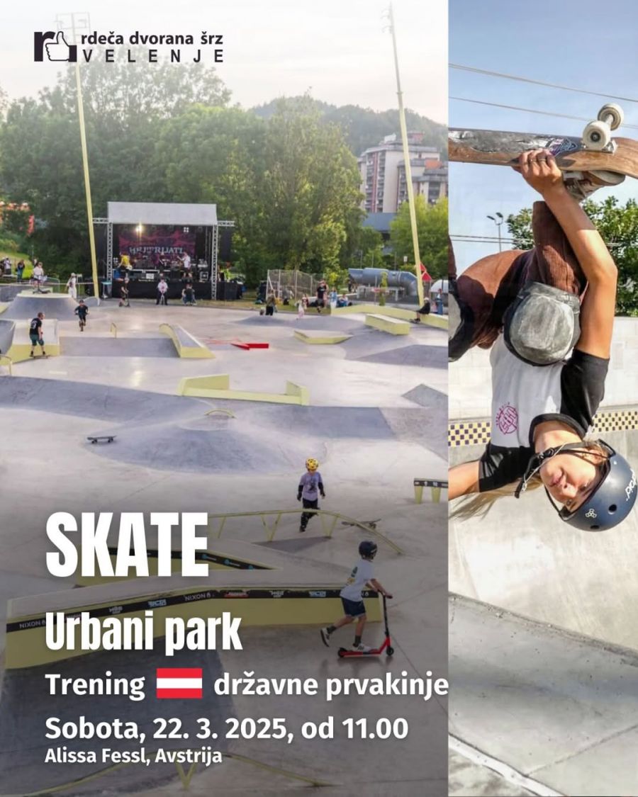 V soboto, 22. marca 2025, bo Urbani park v Velenju gostil vrhunsko skejterko iz Avstrije. Predvidoma ob 11. uri bo na tem največjem skate parku v Sloveniji trening avstrijske državne prvakinje. Na obisk prihaja Alisa Fessl. Na treningu bo morda prisotna tudi slovenska državna prvakinja, Lina Sevčnikar.