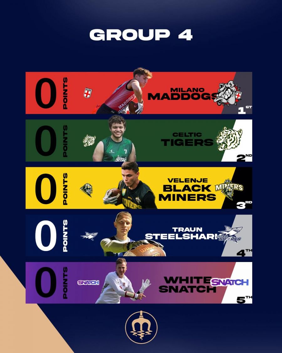 V skupini bodo moči pomerili proti ekipam: @maddogsmilano, @celtictigersflag, @snatchflagfootball in @steelsharks_traun.