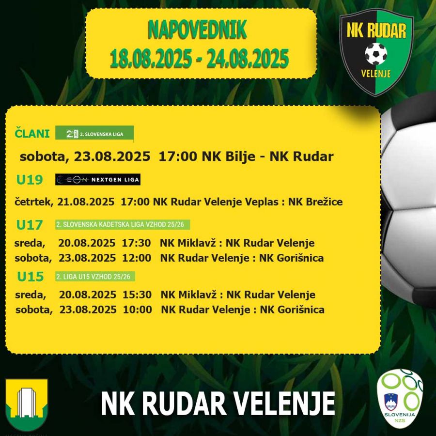 Velenjčani z vstopom v novo sezono ne morejo biti zadovoljni, po uvodnem porazu v Slovenski Bistrici (3:1), so praznih rok ostali tudi na domači zelenici, kjer je pred praznimi tribunami slavila Nafta (1:0). Brez točk so po dveh krogih tudi naslednji tekmeci Rudarja, nogometaši Bilj, ki so v uvodnem krogu pred domačim občinstvom izgubili s Triglavom, minuli konec tedna pa so po preobratu Slovana klonili še v prestolnici.