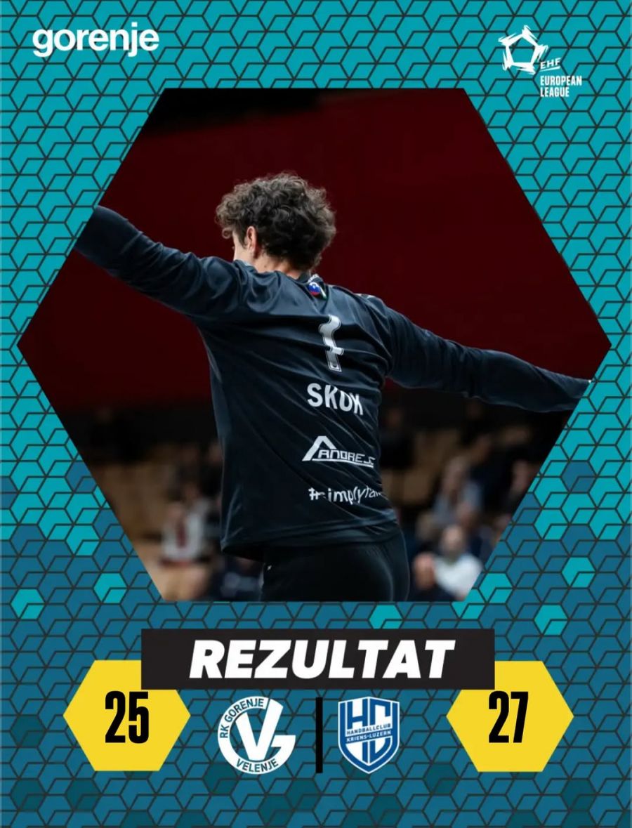 RK GORENJE VELENJE – HC KRIENS LUZERN 25:27 (8:12)