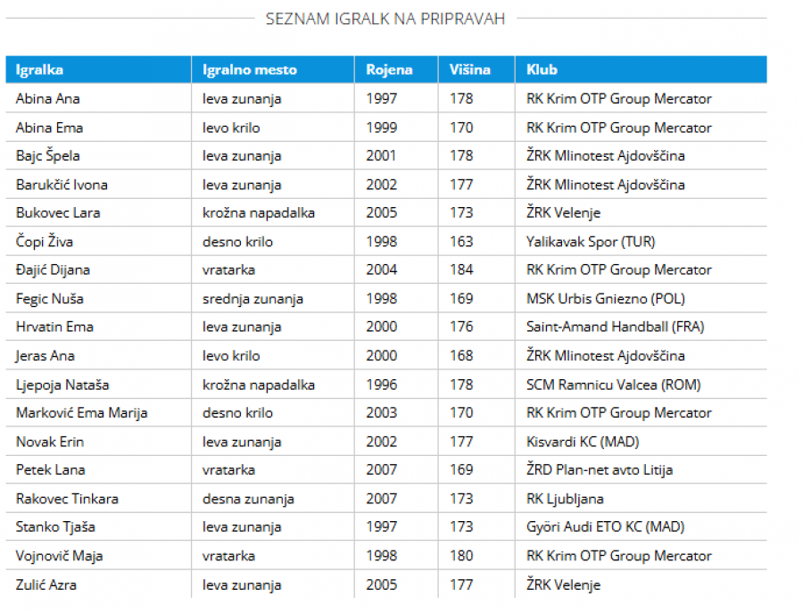 Vir: Rokometna zveza Slovenije
