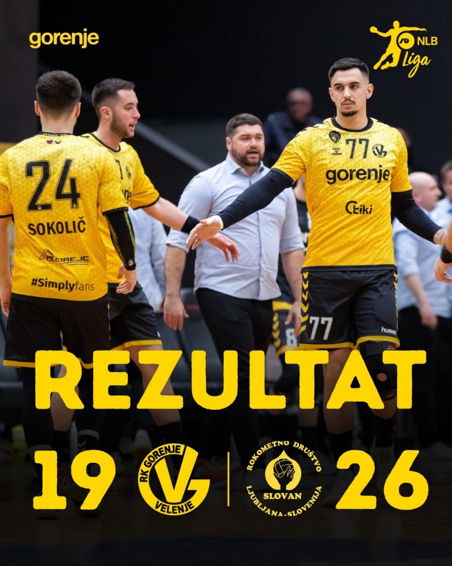 RK GORENJE VELENJE - RD LL GROSIST SLOVAN 19:26 (6:14)