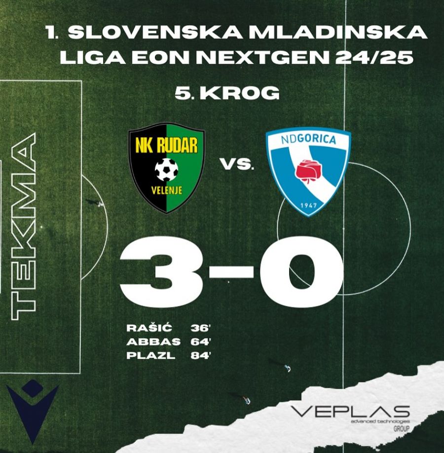 Mladinska ekipa Rudarja je v petek v 5. krogu prve mladinske lige na domači zelenici gostila Gorico in si priigrala drugo zmago v letošnjem prvenstvu (3:0). Po dveh remijih in enem porazu imajo Velenjčani na svojem računu 7 točk, po še nedokončanem petem kolu pa se nahajajo v zgornji polovici razpredelnice, kjer s 15 točkami kraljuje še neporažen Maribor. Prav trenutno vodilna zasedba bo v 6. krogu (predvidoma 14. septembra) gostovala v Velenju.