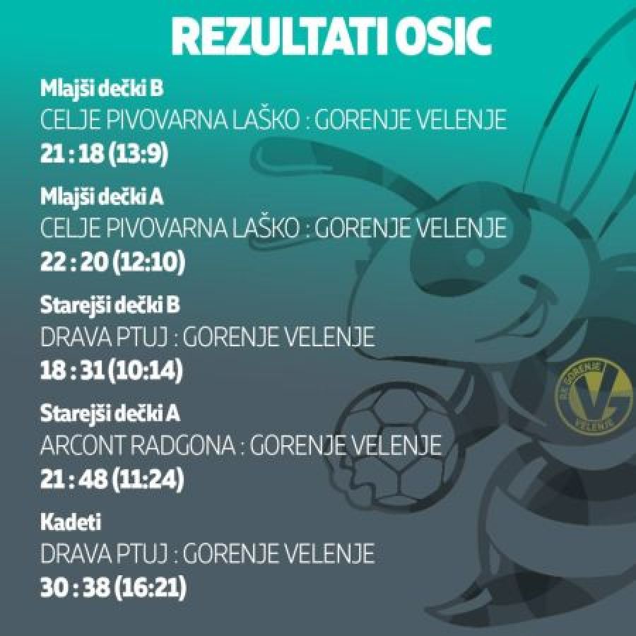 Mladi rokometaši iz selekcij mlajših dečkov B so odigrali vse prej kot težko tekmo proti sovrstnikom iz Celja. V prvem polčas so Velenjčani kazali nekoliko zadržano igro, a so se v drugem polčasu zbrali, strnili vrste in prišli celo do vodstva. Na koncu je velenjskim osicam zmanjkalo malce športne sreče in domačini so zasluženo zmagali.