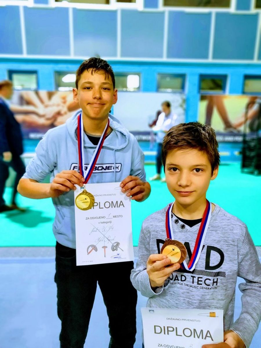 V kategoriji floret dečki U14 sta nastopila Leo Čretnik in Mark Poprask. Z dobrimi predstavami v skupinskem delu tekmovanja, kjer je bil Mark neporažen, Leo pa je zabeležil 3 zmage in 2 poraza, sta se oba uvrstila v nadaljnji, eliminacijski del. Mark je kot prvo rangirani preskočil prvi krog eliminacij in se uvrstil direktno v polfinale, Leo pa se mu je tam pridružil po prepričljivi zmagi z rezultatom 15/6. Kot prvi polfinalni par sta se pomerila med sabo. Mark je bil boljši z rezultatom 15/1, kar mu je zagotovilo nastop v finalu, Leo pa je svoj nastop zaključil z osvojenim odličnim 3. mestom in bronasto medaljo. V finalu je Mark potrdil vlogo favorita in slavil z rezultatom 15/6. Osvojil je 1. mesto in naslov državnega prvaka.