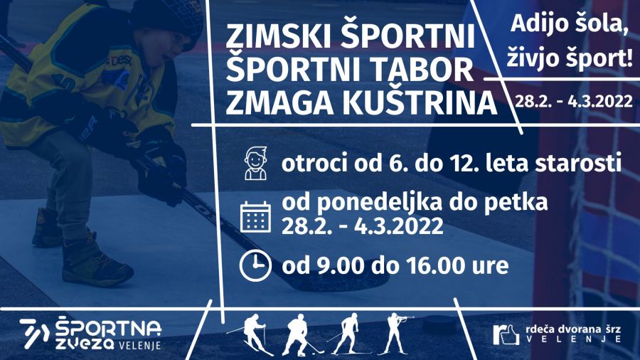 Zimski športni tabor zmaga kuštrina bo potekal med zimskimi počitnicami, od 28.2. do 4.3. Vsak dan od 9.00 do 16.00 bodo otroci v rokah izkušenih vaditeljev in učiteljev. Počitniške dneve jim bomo popestrili s športi: namizni tenis, streljanje, judo, gimnastika, otroška atletika, plavanje, badminton, odbojka, nogomet, rokomet, poligoni, šafetne igre,hokej… kot vsako leto je namen tabora zabava, da otroci aktivno preživijo svoj prosti čas ob športnih igrah in druženju z novimi prijatelji.