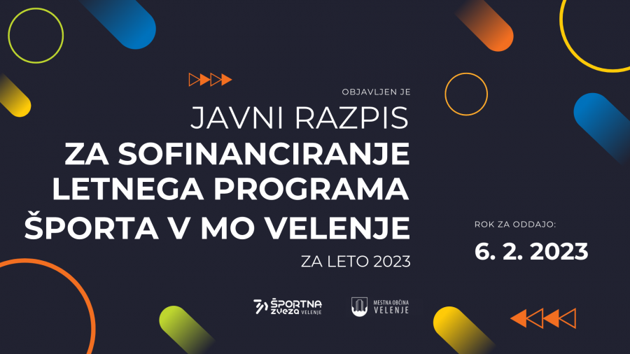 Mestna občina Velenje je v ponedeljek, 9. 1. 2023 objavila Javni razpis za sofinancrianje letnega programa športa v MO Velenje za leto 2023.