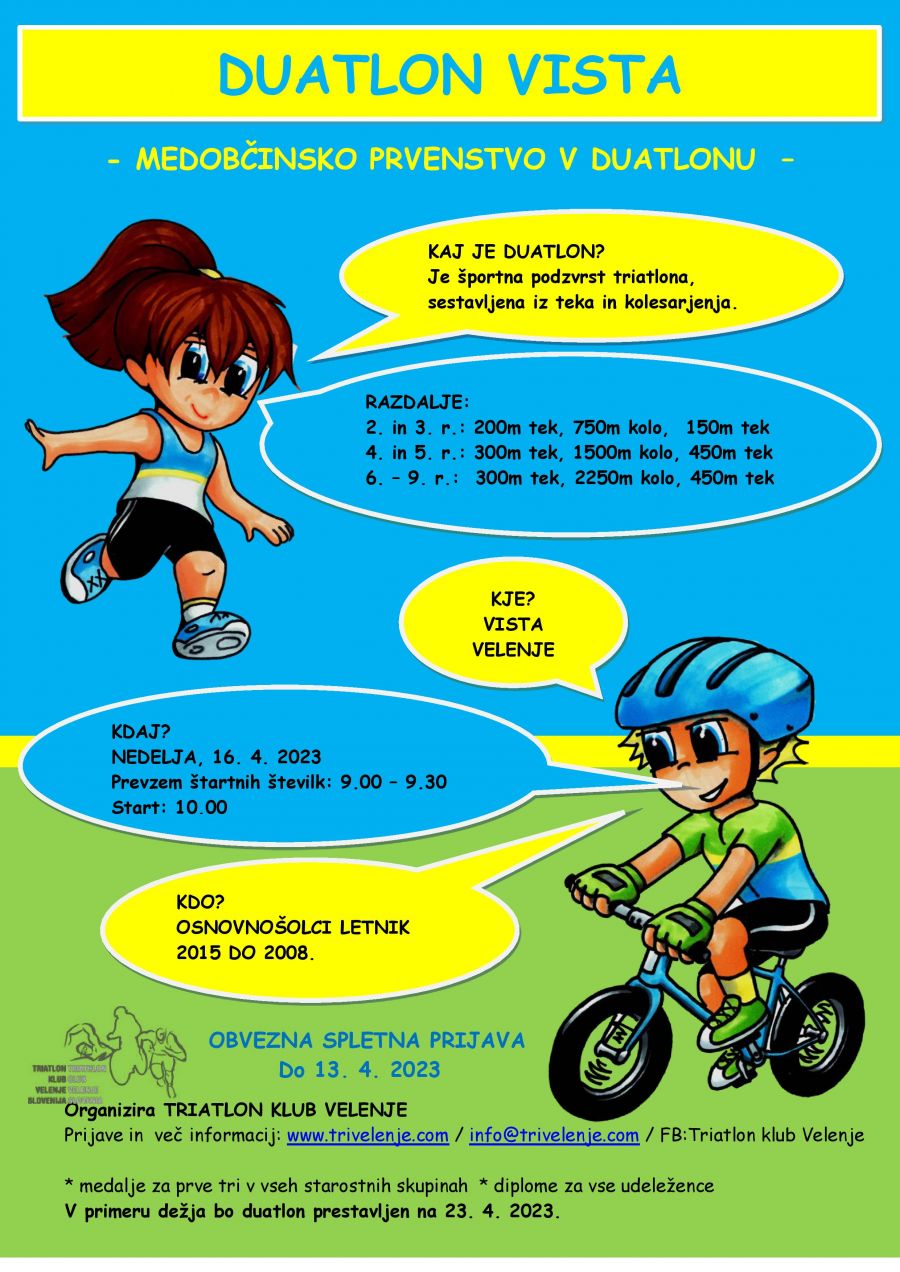 Triatlon klub Velenje v nedeljo, 16.04.2023 na Visti organizira Medobčinsko prvenstvo v duatlonu.