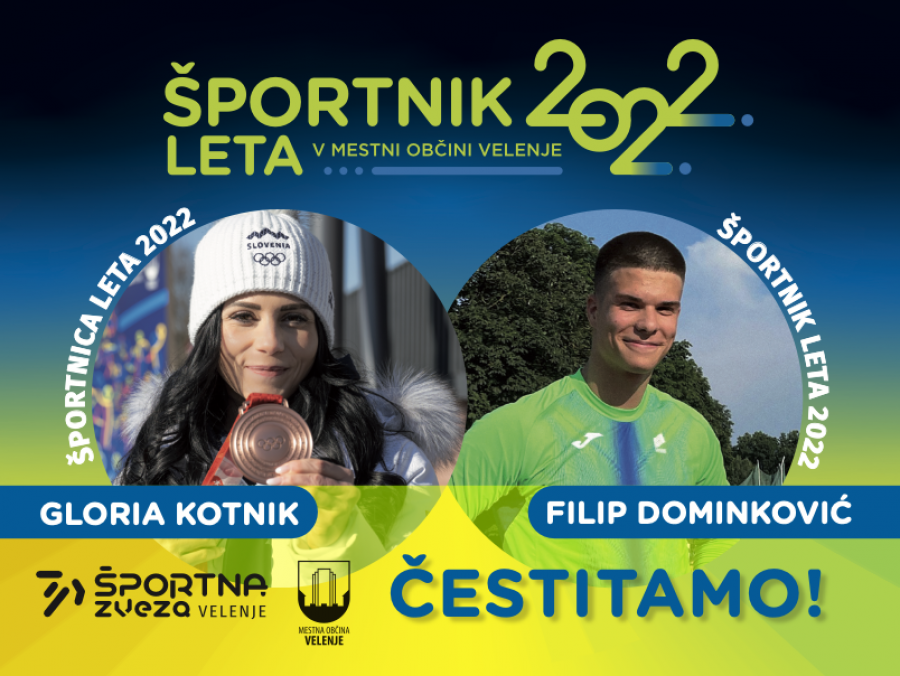 Naziv ŠPORTNIK LETA 2022 v članski kategoriji sta osvojila atlet Filip Dominković in deskarka Gloria Kotnik, v kategoriji ekipa leta pa Rokometni klub Gorenje Velenje. Športnik invalid leta je postal strelec Franček Gorazd Tiršek, športnica invalidka leta pa karateistka Diandra Bekčić. Naslov športnika leta 2022 v neolimpijskih disciplinah je pripadel Luki Krelu, najboljša športnica v neolimpijskih disciplinah pa je postala Staša Lipnik, oba prihajata iz TKD&KB kluba Skala Velenje.