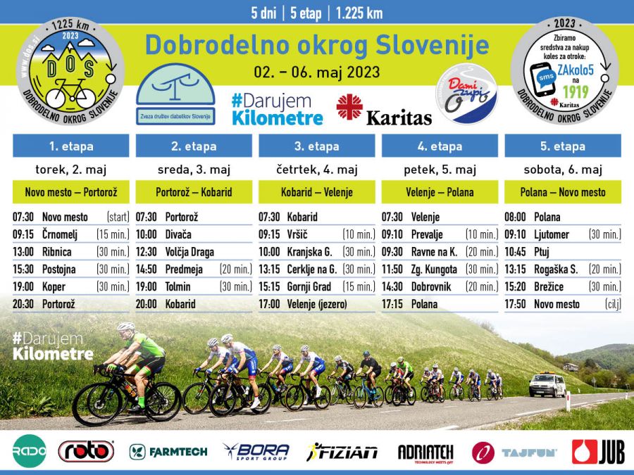 Jutri bo med 17. in 19. uro na Titovem trgu sprejem karavane kolesarjev humanitarnega kolesarskega dogodka Dobrodelno okrog, ki bo v petih dneh prekolesarila 1.225 kilometrov. Slogan letošnjega projekta je Pot za srečo otrok.