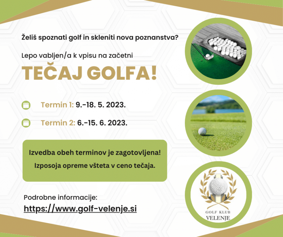 Pripravili so dva termina za izvedbo začetnega tečaja golfa. Za oba termina je izvedba zagotovljena, zato lepo vabljen/a k prijavi.
