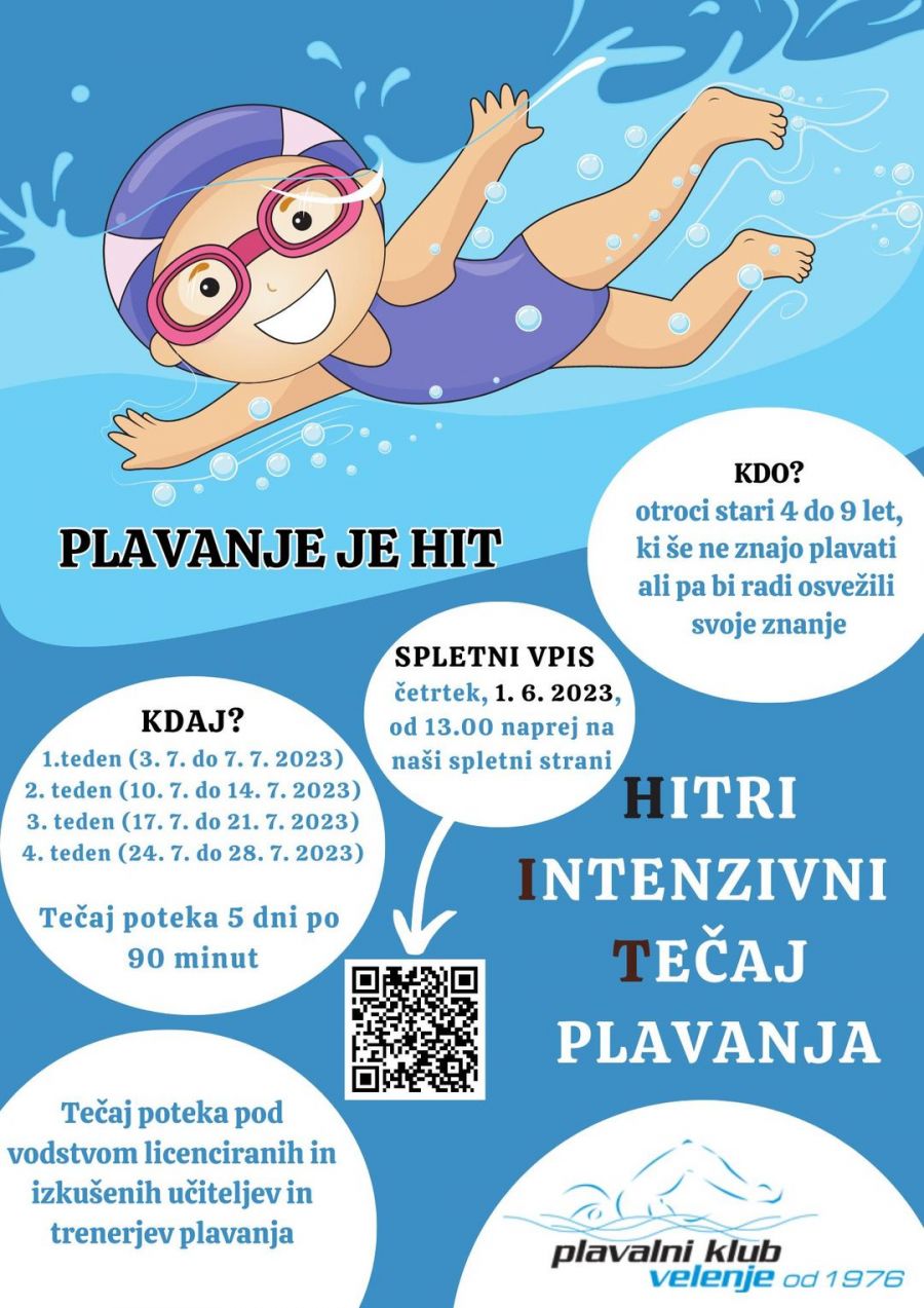 V mesecu JULIJU bo Velenjski plavalni klub organizirali Hitre Intenzivne Tečaje (HIT) plavanja za otroke stare 4 do 9 let (popust na drugega otroka in na vsak naslednji termin).