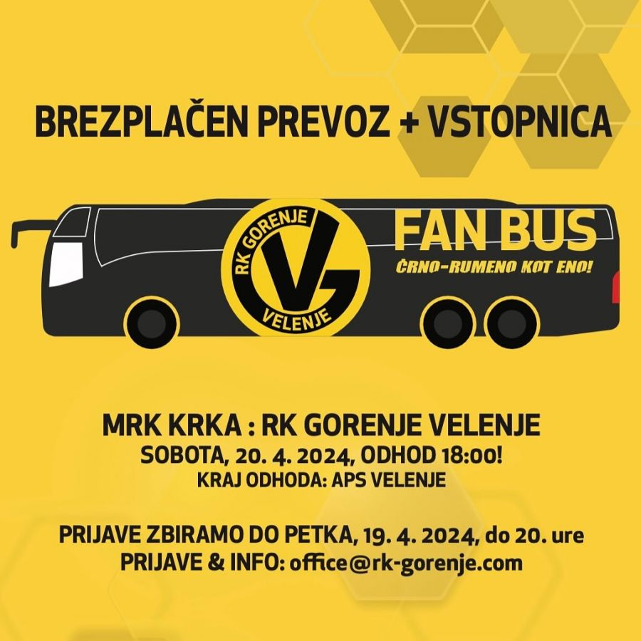 V želji, da na težki tekmi proti MRK Krka v čim večjem številu podprete rokometaše Gorenja Velenja, so za vas pripravili posebno ponudbo. Odločili so se, da bodo vsem zainteresiranim za ogled tekme, plačali prevoz do Novega Mesta in nazaj ter vstopnico za tekmo.