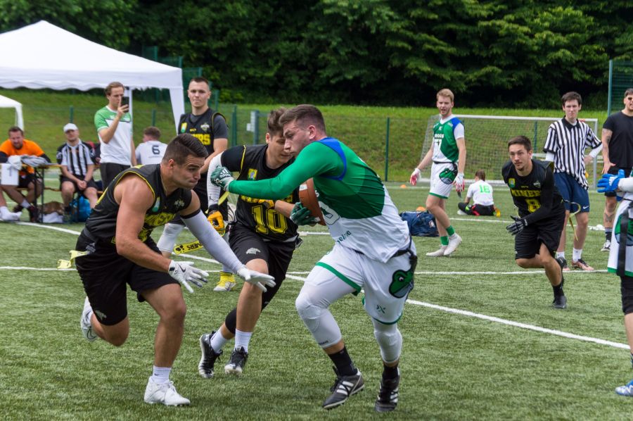Iz Novega mesta se Rudarji vračajo z dvema zmagama in brez poraza! V prvi tekmi proti LAZAR Wild Hogs Kočevje so po napeti končnici zmagali z rezultatom 21:19, zahvaljujoč izjemni obrambi, ki v drugem polčasu ni prejela nobene točke in celo poskrbela za pick six.