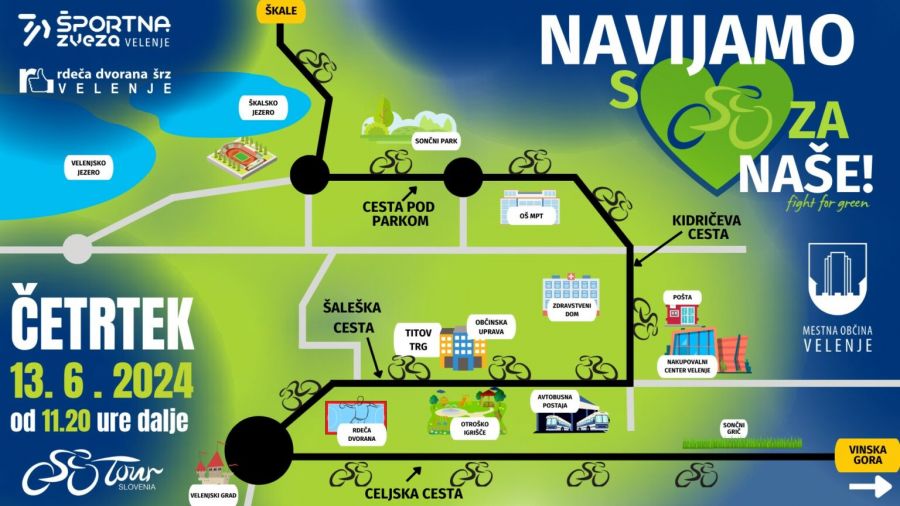 V četrtek, 13. junija, bo Velenje del 30. kolesarske dirke Po Sloveniji. Kolesarji se bodo v Velenje pripeljali iz smeri Šoštanja, mimo Gaberk, čez Škale, ob Škalskem jezeru do Starega kina.