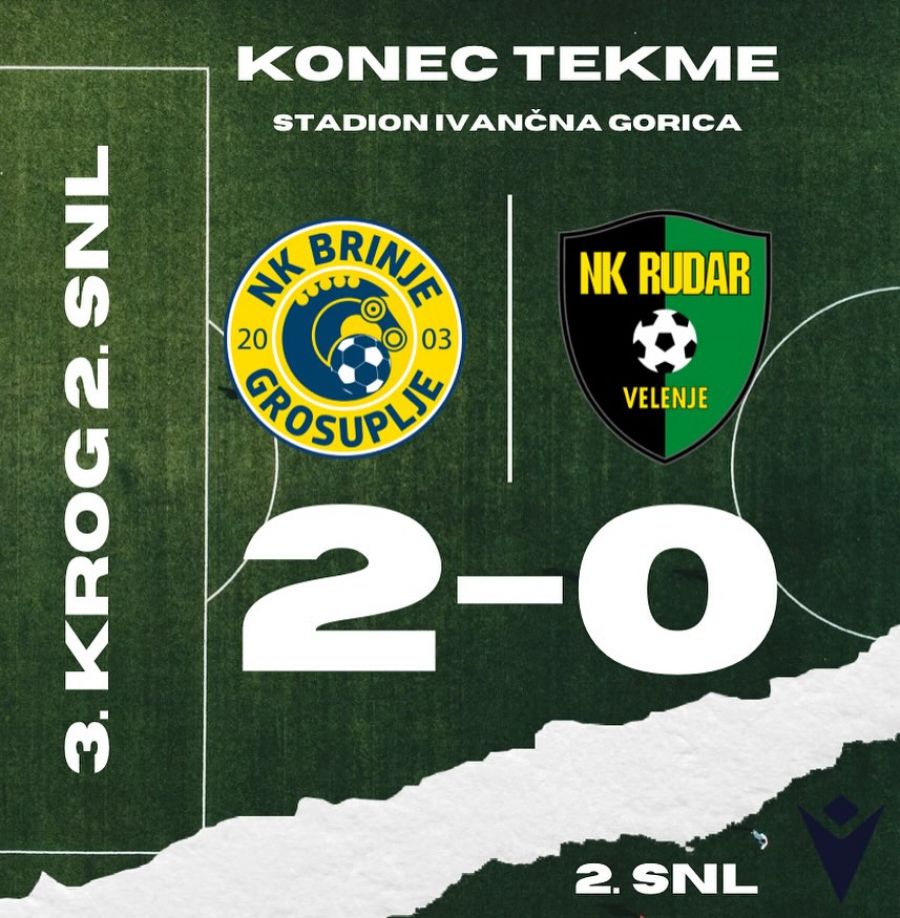 BRINJE GROSUPLJE – RUDAR VELENJE 2:0 (0:0)