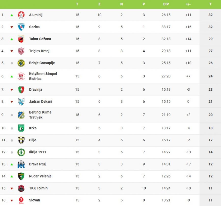 Včeraj se je z nedeljskimi tekmami 15. kroga zaključila prva polovica 2. slovenske nogometne lige. Kolo je sklenil obračun Rudarja in Ilirije, ki sta se v Velenju razšla brez zmagovalca (0:0).