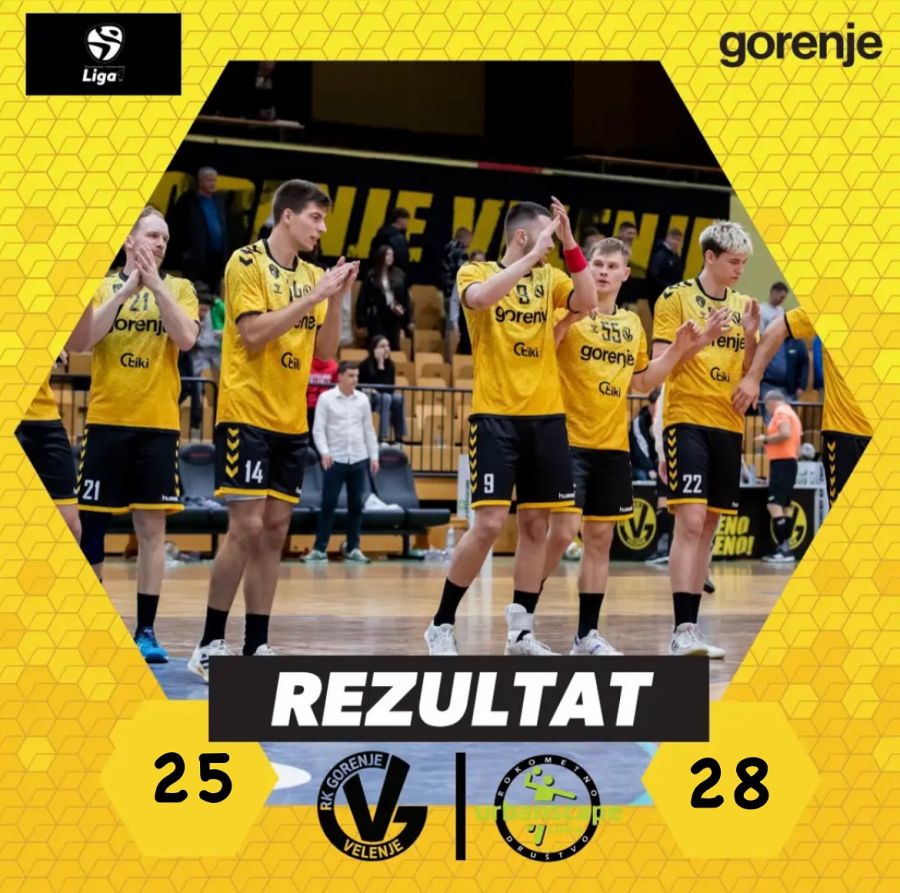 RK GORENJE VELENJE : RD URBANSCAPE LOKA 25:28 (14:14)