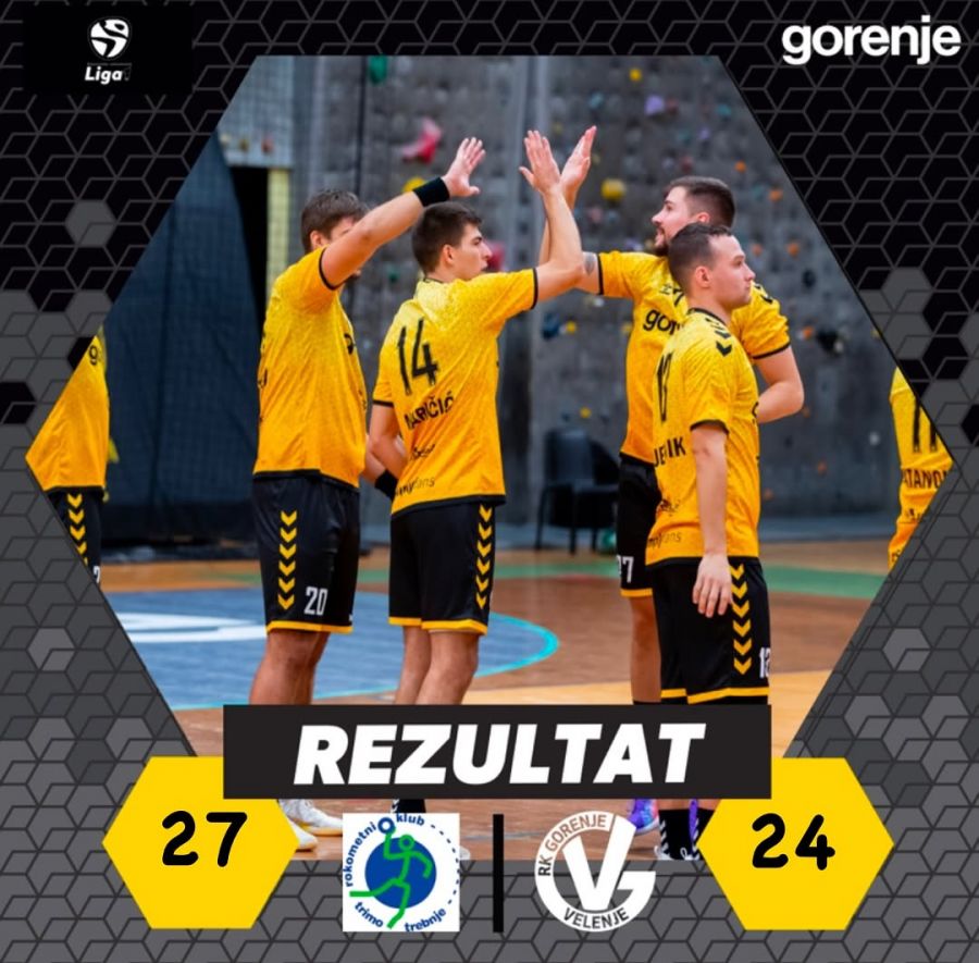 Trebanjci so dosegli peto zmago v nizu in drugo odmevno v zadnjih petih dneh. V soboto so do kolen potolkli vodilne rokometaše iz Ljubljane in jih premagali za deset golov, danes so bili na osrednji tekmi 15. kroga pred domačimi gledalci boljši tudi od zadnjih slovenskih prvakov iz Velenja, ki so pred prihodom na Dolenjsko doma klonili proti Novomeščanom. Dolenjski rokometaši so vodili od prve do zadnje minute. V prvem polčasu so povedli z 8:5, nato malenkostno popustili in Velenjčanom dovolili, da so jih ujeli (8:8, 9:9), v končnici prvega polčasa pa znova zaigrali učinkovito ter po zaslugi golov Jana Jurečiča in dobrih obramb Urbana Lesjaka na veliki odmor odšli s prednostjo treh golov (12:9).