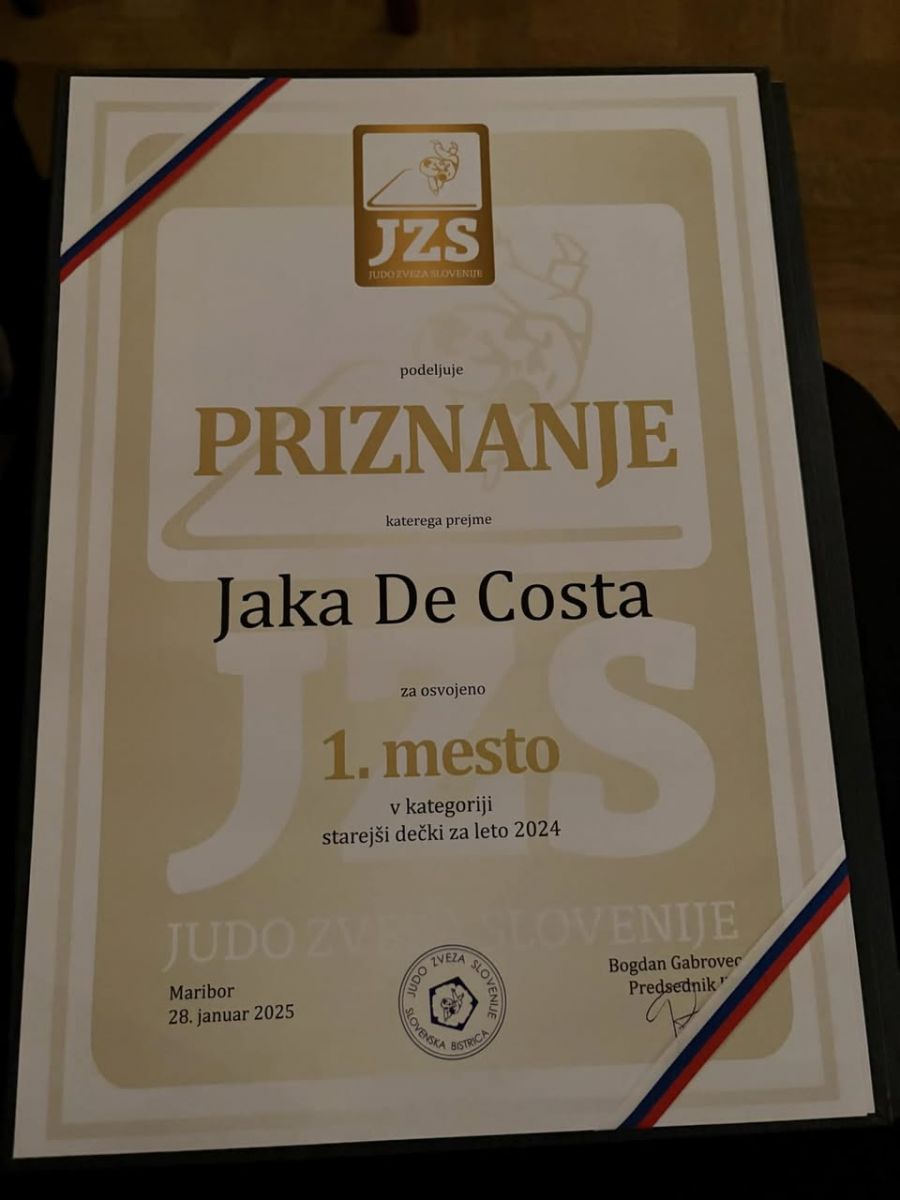 Za Judo klub Velenje je v starostni kategoriji U14 nagrado za najboljšega posameznika prejel Jaka De Costa.