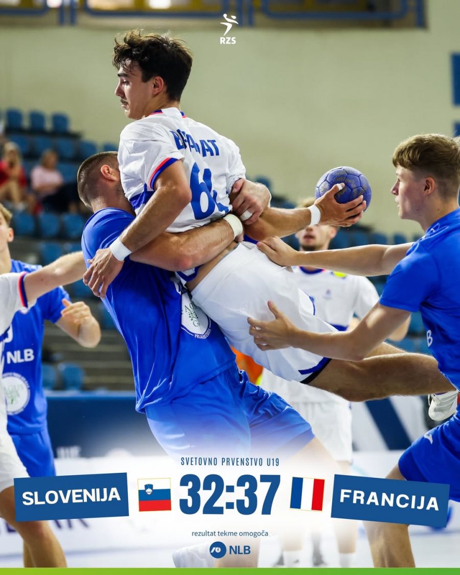 Slovenska reprezentanca do 19 let je na svetovnem prvenstvu v Egiptu na drugi tekmi drugega dela s 37:32 izgubila proti Franciji. S tem ostala brez mesta v četrtfinalu.