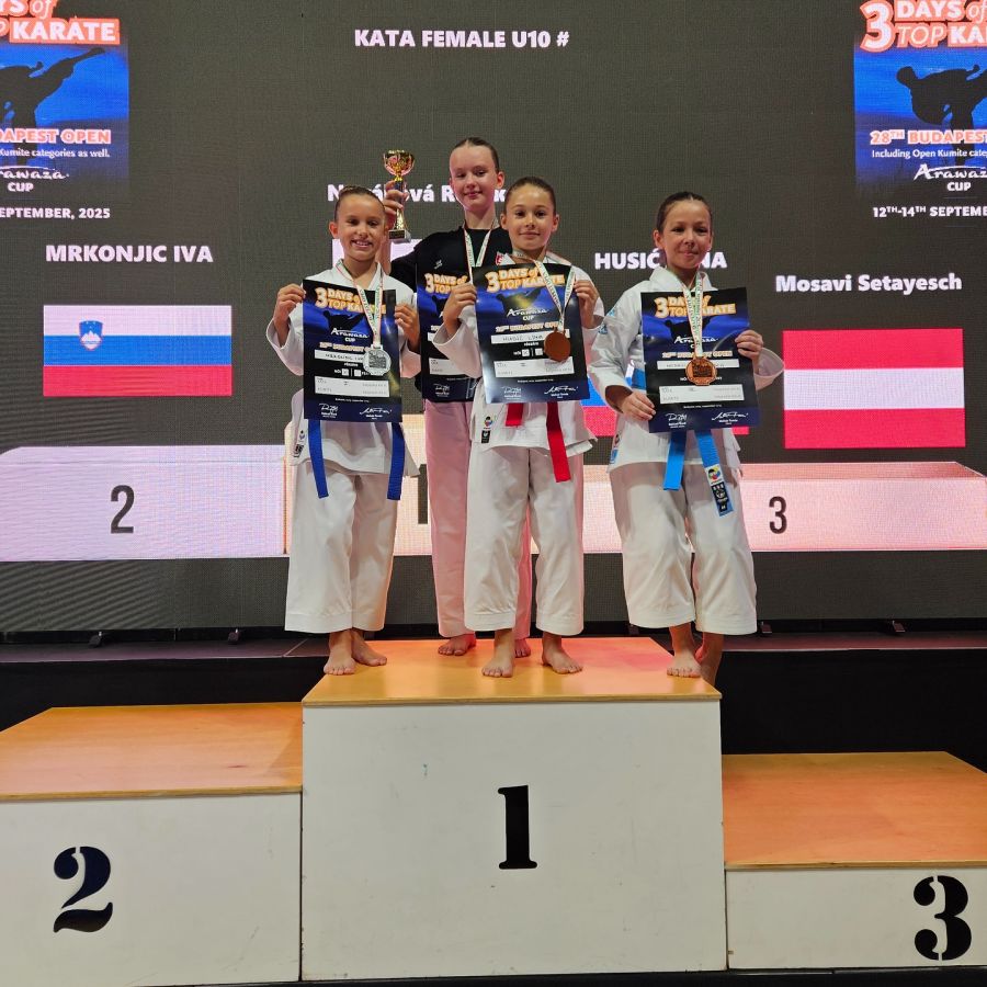 - Iva je v kata female U10 med 21 tekmovalkami premagala nasprotnice iz Slovaške, Latvije in Avstrije.