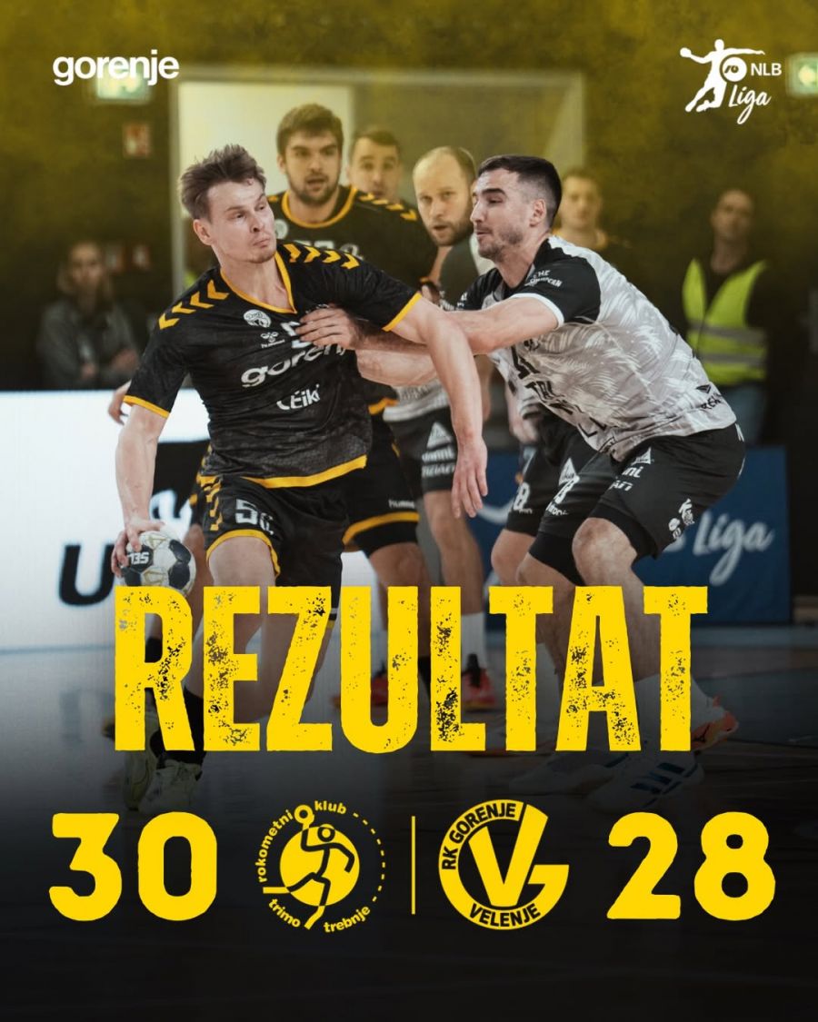 RK TRIMO TREBNJE : RK GORENJE VELENJE 30:28 (10:13)