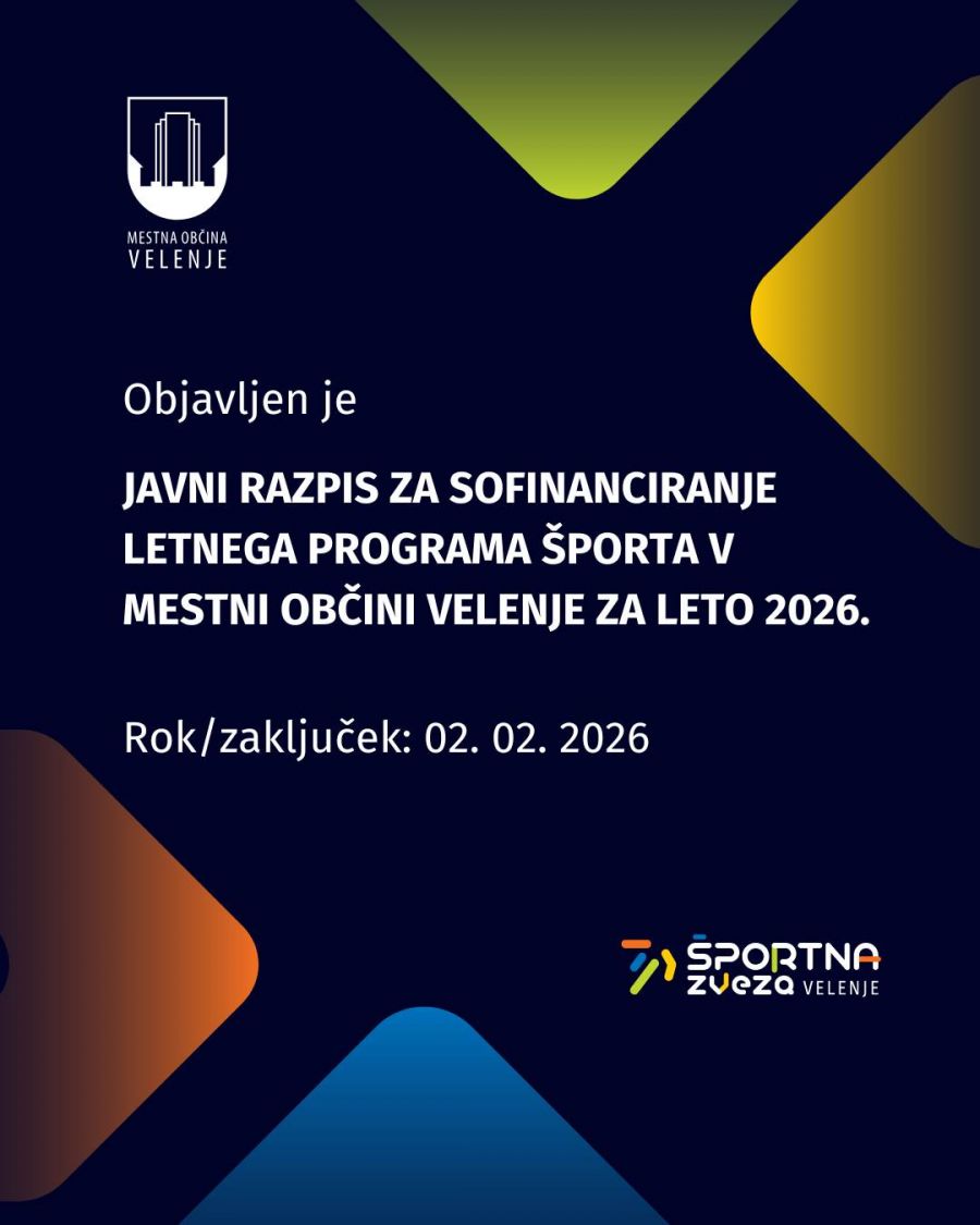Z današnjim dnem, 9. 1. 2026, je Mestna občina Velenje objavila javni razpis za sofinanciranje letnega programa športa za leto 2026.