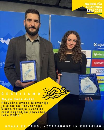 Plavalna zveza Slovenije je članico Plavalnega kluba Velenje, Najyo Hano Jukić, uvrstila med najboljše plavalke leta 2025.
