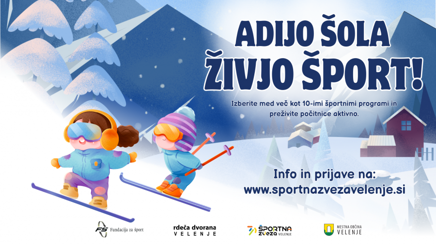 Zimski počitniški športni programi potekajo v okviru programa "Adijo šola, živjo šport!" in so namenjeni otrokom ter mladostnikom, ki želijo zimske počitnice preživeti aktivno, sproščeno in v dobri družbi. Cilj programa je spodbuditi čim večje število otrok in mladostnikov k vključevanju v raznolike športne aktivnosti, skozi katere lahko kakovostno zapolnijo prosti čas, se gibajo, spoznavajo nove športe ter razvijajo zdrav in aktiven življenjski slog. V prvem delu programa športne aktivnosti izvajajo športni klubi in društva v obliki vodenih vadb, v drugem delu pa je Športna zveza Velenje v sodelovanju z Rdečo dvorano ŠRZ Velenje pripravila poseben program, ki omogoča, da otroci in mladostniki samostojno obiščejo športne površine, ki so v upravljanju Rdeče dvorane ŠRZ Velenje, ter se po lastni izbiri vključijo v športne aktivnosti.