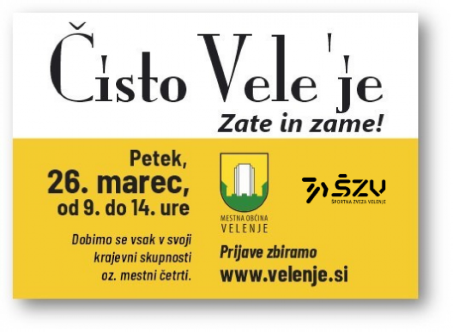 Mestna občina Velenje se je na nas obrnila s prošnjo, da se kot športniki, ki spadamo med najbolj ozaveščeno in družbeno odgovorno populacijo odzovemo na vabilo k očiščevalni akciji, ki se bo izvedla v petek 26. marca 2021, od 9. do 14. ure. Zbori sodelujočih bodo na sedežih krajevnih skupnosti oz. mestnih četrti.